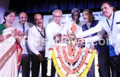 Photo Caption : Ministers Halappa Achar, Kota Srinivas Poojari and others during inauguration of State level conference of "Spandana" organized by Special Teachers - Non-Teaching Staff of Special Schools at Sikshakara Sadana, in Bengaluru on Saturday 29th October 2022