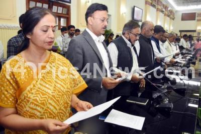 Photo Caption : CM Basavaraj Bommai with Chief Secretary Ravikumar, Karnataka State Government higher officials taking oath on the National Unity Day to mark the National Integration Day on the occasion of birth anniversary celebration of Iron Man of India, Sardar Vallabhai Patel at Vidhan Soudha, in Bengaluru on Monday 31st October 2022