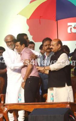 Photo Caption : Chief Minister of Karnataka Basavaraj Bommai with Super Star Rajanikanth and Actor Shivarajkumar during "Karnataka Ratna" award presentation program at Vidhana Soudha, Kannada Actor Puneeth Rajkumar posthumously awarded the Karnataka Ratna Award, in Bengaluru on Tuesday 1st November 2022