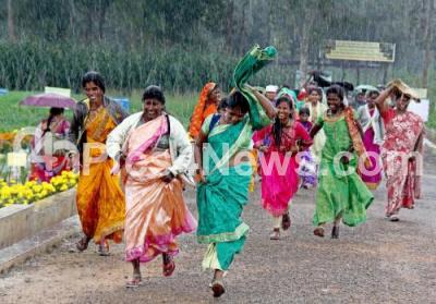 Photo Caption : People rushing to take shelter due to rain during the inauguration of "Krishi Mela 2022" organized by University of Agricultural Science, at GKVK campus (Gandhi Krishi Vigyana Kendra), in Bengaluru on Thursday 3rd November 2022