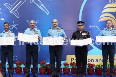 Photo Caption : Chief of Air Staff Air Chief Marshal VR Chaudhari with Aircraft and Systems Testing Establishment (ASTE) Commandant Air Vice Marshal Jeetendra Mishra and others releases souvenir during the International Flight Test Seminar organised as part of Golden Jubilee celebrations of ASTE, in Bengaluru on Friday 4th November 2022