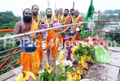 Photo Caption : Seers during Mahakumbhabhisheka Mahotsava of Sri Kadumallikarjuna Swami temple at Malleshwaram, in Bengaluru on Sunday 6th November 2022