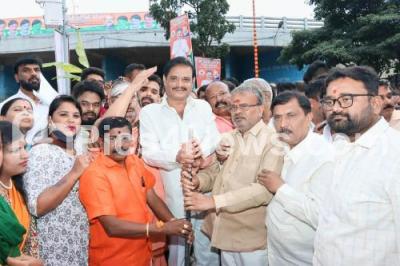 Photo Caption : Minister Munirathna during inauguration of White topping work at Nagarabhavi, in Bengaluru on Sunday 6th November 2022