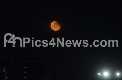 Photo Caption : Moon partially covered by the earth shadow during lunar eclipse, in Bengaluru on Tuesday 8th November 2022