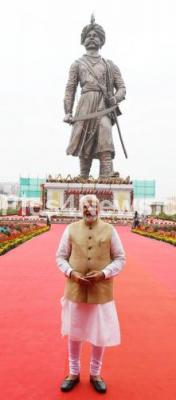 Prime Minister Narendra Modi during the inauguration of 108 feet tall bronze statue of Nadaprabhu Kempegowda called Statue of Prosperity, at Kempegowda International Airport, in Bengaluru on Friday 11th November 2022