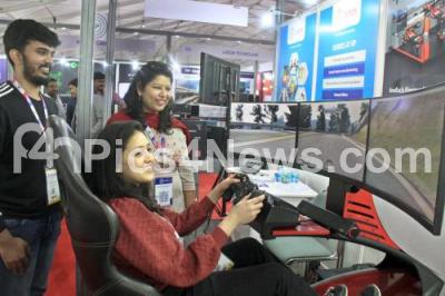 Visitors at the exhibition area during inauguration of Bengaluru Tech Summit 2022 at Palace Grounds, in Bengaluru on Wednesday 16th November 2022