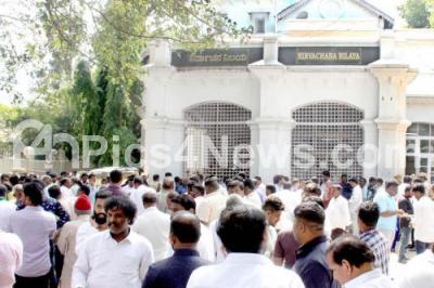 Photo Caption : Congress supporters gathered at Chief Election office, during congress leaders complaint to chief election commissioner of Karnataka Manoj Kumar Meena regarding stealing of voter data, in Bengaluru on Saturday 19th November 2022