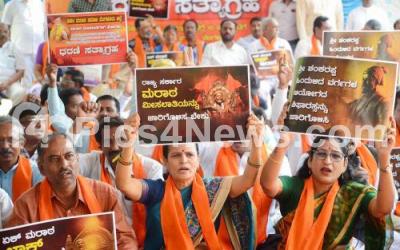 Photo Caption : Members of Sakala Maratha Samaja protest demanding to include maratha community from category 3(B) to 2(A) at Freedom Park, in Bengaluru on Saturday 19th November 2022