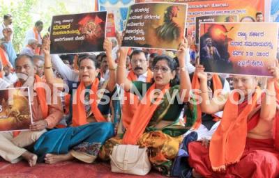 Photo Caption : Members of Sakala Maratha Samaja protest demanding to include maratha community from category 3(B) to 2(A) at Freedom Park, in Bengaluru on Saturday 19th November 2022