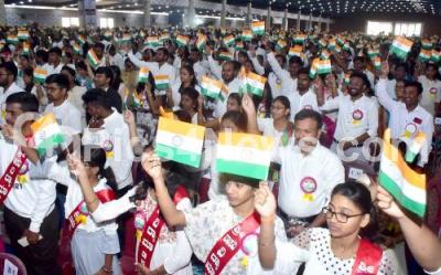 Photo Caption : Students during 12th Prathiba Puraskara organized by Karnataka Arya Vysya Mahasabha at Palace Grounds, in Bengaluru on Sunday 20th November 2022