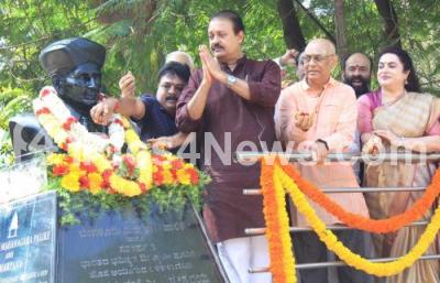 Photo Caption : MLA Uday Garudachar and others garlanding the statue of Sir M Visvesvaraya during VV Puram Jatre to mark 100 years of construction of VV Puram Layout, which was designed by Sir M Visvesvaraya, in Bengaluru on Saturday 26th November 2022