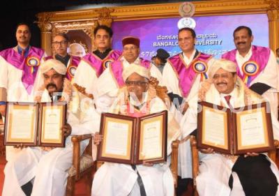 Photo Caption : Governor Thaawar Chand Gehlot presented Honorary doctorate to Film Actor and Director Dwarakish, Amarnath Gowda, Attorney, Counselor of Law and President, AKKA USA and Dr. TL Anil Kumar, Artist and Photographer during 57th Annual Convocation 2022 of Bengaluru University at Jnana Jyothi Auditorium, in Bengaluru on Monday 5th December 2022