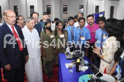 Photo Caption : Dr. M R Doreswamy. Chancellor, PES University with HR Nagendra, Chancellor, University of Swami Vivekananda Yoga Anusandaana Institute and Students during inauguration of the Science Fair 2022 at PES University, in Bengaluru on Friday 9th December 2022
