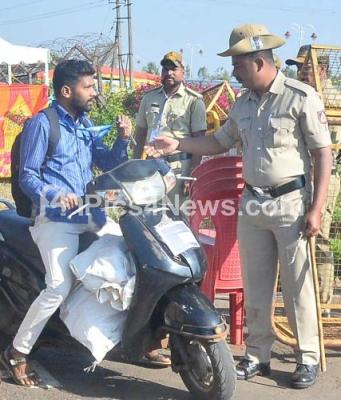 Photo Caption : Security check during Winter Assembly session at Suvarna Soudha, in Belagavi on Monday 19th December 2022