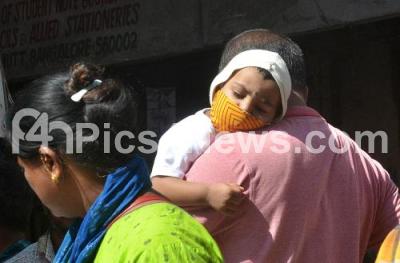 Photo Caption : A baby seen wearing a face mask as precautionary measure against new variant of Covid at KR Market, in Bengaluru on Thursday 22nd December 2022