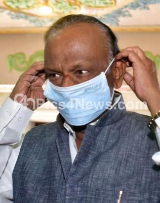 Photo Caption : Minister MTB Nagaraj wearing face mask in precautionary guidelines for Coronavirus pandemic during winter assembly session at Suvarna Soudha, in Belagavi on Monday 26th December 2022