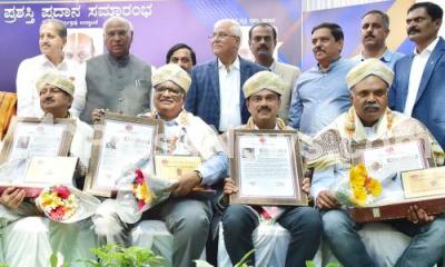 Photo Caption : Justice Gopalagowda and AICC President Mallikarjuna Kharge presenting Press Club 2022 year award to senior Journalists , during a program at Press Club, also seen are Minister Murugesh Nirani, Press Club President Sridhar and others, in Bengaluru on Saturday 31st December 2022