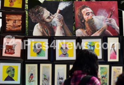 Event Description : Artists and art enthusiasts seen during the Annual Chitra Santhe (Art Fair) organised by Karnataka Chitrakala Parishat, in Bengaluru on Sunday 8th January 2023
