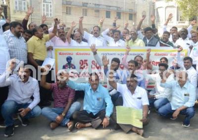Photo Caption : Members of BBMP Contractors Association staged a protest to fulfill their various demnds at BBMP Head office, in Bengaluru on Monday 9th January 2023