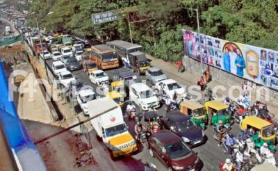 Photo Caption : Traffic jam around city railway station due to Bhovi Community protest rally from City Railway station to Freedom Park , in Bengaluru on Tuesday 10th January 2023