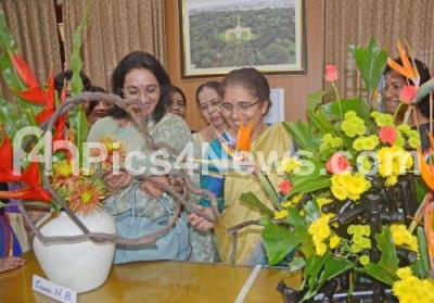 Chairman and co-founder of Adamya Chetana Foundation, Tejaswini Ananth Kumar during the Ikebana show at Lalbagh, in Bengaluru on Saturday 21st January 2023