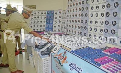 Photo Caption : Police seen during the property parade by Rajarajeshwari Nagar police seized worth 57 lakhs of smart watches at commissioner office, in Bengaluru on Tuesday 24th January 2023