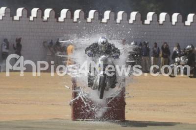 Photo Caption : Indian army Motorcycle display team "Tornadoes" perform during Republic Day celebrations at Manekshaw Parade Ground, in Bengaluru on Thursday 26th January 2023