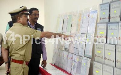 Event Description : Police Commissioner Pratap Reddy and CCB officers inspecting the seized fake marks cards for different courses of different universities in the state, in Bengaluru on Friday 27th January 2023