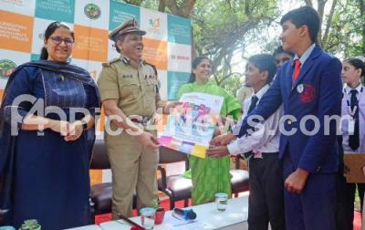 Photo Caption : Traffic Division Special Commissioner of Police Dr. Abdul Saleem with students from various schools celebrating Namma Bengaluru children say thank you to the traffic police at Traffic police park at St Marks Road, in Bengaluru on Tuesday 31st January 2023