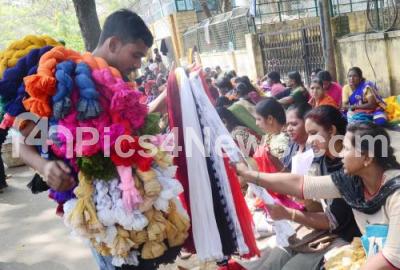 Photo Caption : A cloth vendor selling clothes at Karnataka State Anganwadi Workers and Helpers protest at Freedom Park, in Bengaluru on Wednesday 1st February 2023