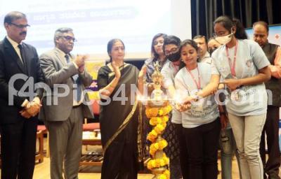 Photo Caption : Youth and Sports Department ACS Shalini Rajneesh with Vice Chancellor of Rajiv Gandhi University of Health Sciences (RGUHS) Dr. M. K. Ramesh, Chairman Indian Red Cross Society AB Shetty and others Cancer awareness outreach programme at Yavanika , in Bengaluru on Saturday 4th February 2023
