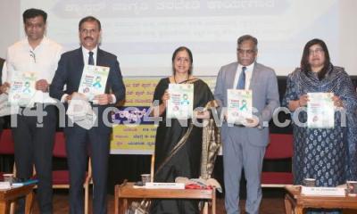 Youth and Sports Department ACS Shalini Rajneesh with Vice Chancellor of Rajiv Gandhi University of Health Sciences (RGUHS) Dr. M. K. Ramesh, Chairman Indian Red Cross Society AB Shetty and others Cancer awareness outreach programme at Yavanika , in Bengaluru on Saturday 4th February 2023