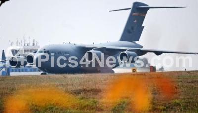 Photo Caption : An US Air Force flight lands during rehearsals ahead of Aero India 2023 air show at Yelahanka Airbase, in Bengaluru on Wednesday 8th February 2023