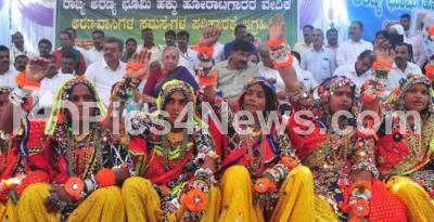 Members of Forest Land Rights Activists Forum demand state government to distribute cultivation land for ST and traditional forest dwellers, during their protest at Freedom Park, in Bengaluru on Friday 10th February 2023