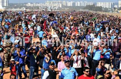 Photo Caption : Crowd during the full dress rehearsal of Aero India 2023 at Yelahanka Air Base, in Bengaluru on Saturday 11th February 2023