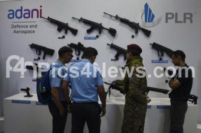 Visitors seen at the exhibition stall of Adani Defence and Aerospace on the 2nd day of Aero India 2023, at Yelahanka Air Base , in Bengaluru on Tuesday 14th February 2023