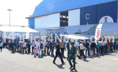 Photo Caption : People standing in the queue to take a closer look of Gripen fighter jet during 3rd day of Aero India 2023 at Yelahanka Air Base, in Bengaluru on Wednesday 15th February 2023