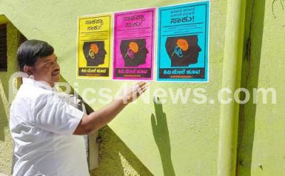 Event Description : Karnataka Congress Party Kivi Mele Hoova (flower on the ear) poster campaign against BJP government as part of campaign for the upcoming Karnataka Assembly Elections, in Bengaluru on Saturday 18th February 2023