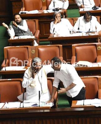 Photo Caption : CLP Leader Siddaramaiah and MLA UT Khader during Assembly session at Vidhana Soudha, in Bengaluru on Tuesday 21st February 2023