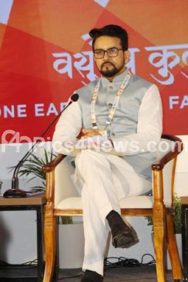 Photo Caption : Union Minister of Information and Broadcasting Anurag Thakur addressing media on the second meeting of the G20 Finance and Central Bank Governors Deputies under India G20 presidency, in Bengaluru on Wednesday 22nd February 2023
