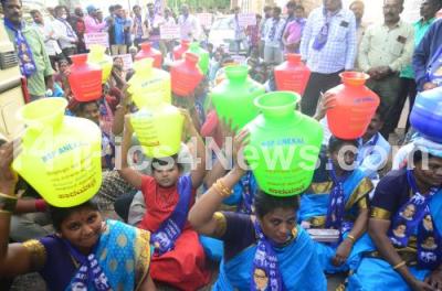 Photo Caption : Members of Bahujan Samaj Party participated in a protest rally from Chandapur to Bangalore District Collectors Office, demanding for Cauvery water in Anekal Taluk, in Bengaluru on Friday 24th February 2023