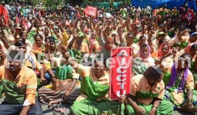 Photo Caption : Pourakarmikas gathered at BBMP head office demanding to make pourakarmikas permanent, which was promised by Chief Minister, in Bengaluru on Tuesday 28th February 2023