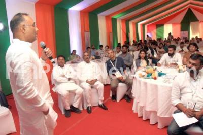 Photo Caption : MLAs Dinesh Gundu Rao and KJ George with Indian Youth Congress National President BV Srinivas and Youth Congress leaders during Indian Youth Congress National Executive meeting, in Bengaluru on Friday 3rd March 2023