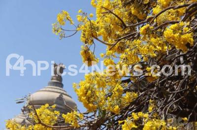 Event Description : Tabebuia yellow flowers in full bloom at Vidhana Soudha, in Bengaluru on Monday 6th March 2023