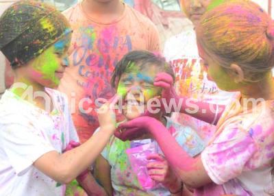 Photo Caption : Children celebrate Holi festival, in Bengaluru on Tuesday 7th March 2023