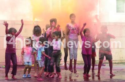 Photo Caption : Children celebrate Holi festival, in Bengaluru on Tuesday 7th March 2023