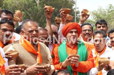 Event Description : Basava Jaya Mruthyunjaya Swamiji from Kudalasangama Panchamashali Peeta along with community members holding coconut shell (Tenginakayi Chippu) during a protest, demanding reservation for Panchamshali under 2A category, at Freedom Park, in Bengaluru on Friday 9th March 2023