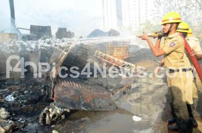Photo Caption : Firemen try to dose off the fire broke out at a plastic godown in Pramod Layout in Nayandahalli, in Bengaluru on Friday 10th March 2023