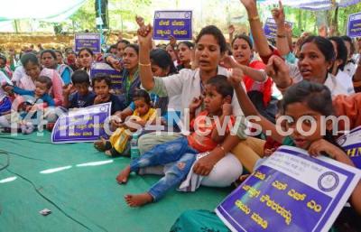 Photo Caption : Members of Karnataka State Department of Health and Family Welfare and NHM subcontractors staged a protest to fulfill their various demands at Freedom Park, in Bengaluru on Monday 13th March 2023