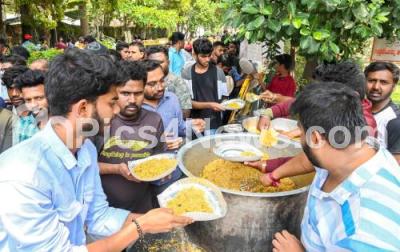 Photo Caption : Food distribution at Kanteerava Studio on the occasion of birth anniversary of Actor Puneeth Rajkumar, in Bengaluru on Friday 17th March 2023